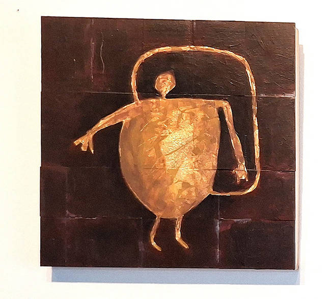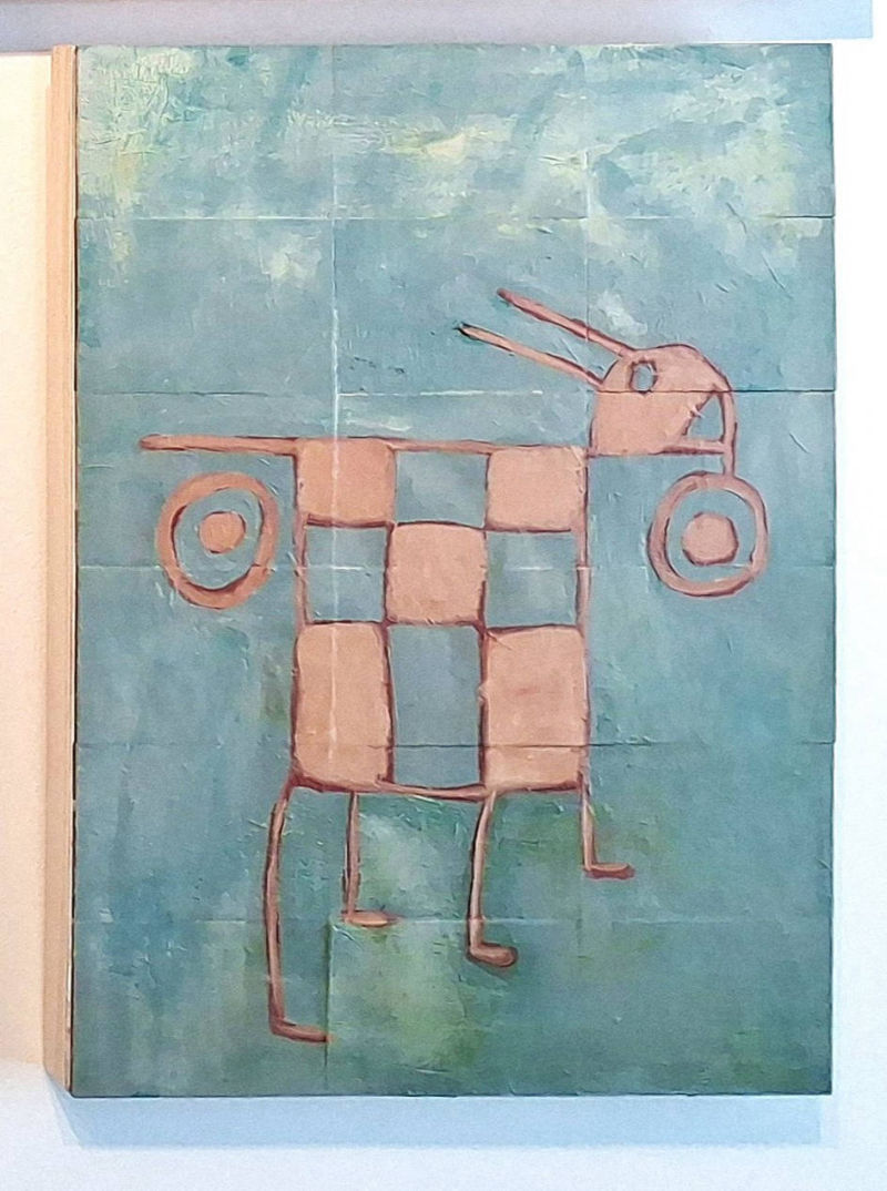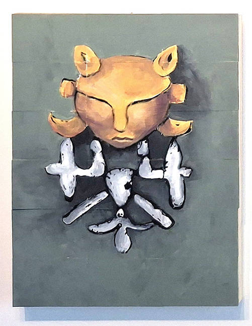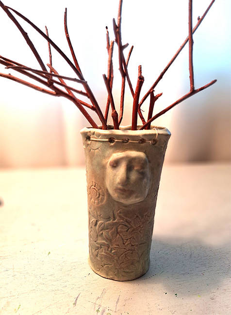 Ceramic clay, painted twigs